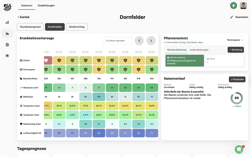 Prévisions météorologiques, risque de maladie et avancement du travail en un coup d'œil. La documentation simple permet d'économiser de la paperasse et il y a toujours une oreille attentive pour les problèmes ou les propositions d'amélioration. 5 étoiles sur 5.
